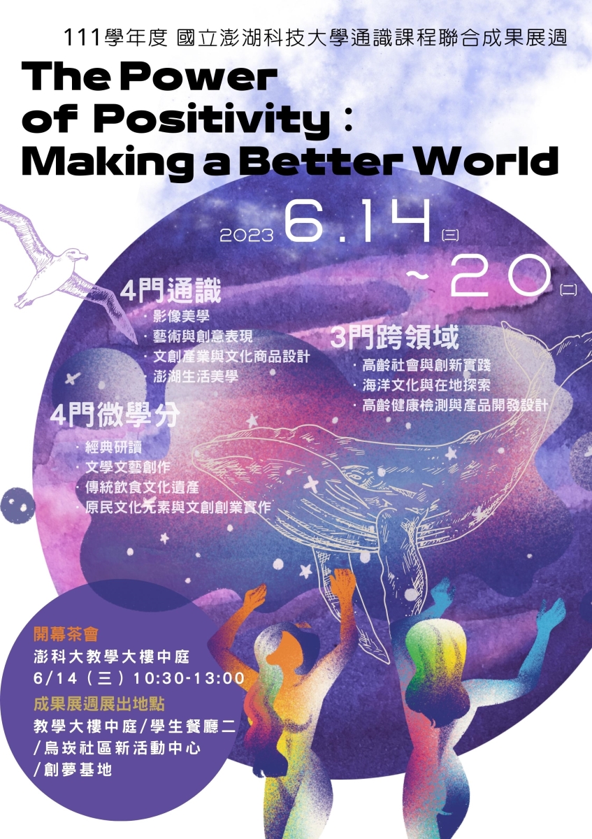 本中心於6月14-20展出「The Power of Positivity: Making a Better World」通識課程聯合成果展週,歡迎澎湖鄉親前往參觀展覽,支持學子們的創作成果。